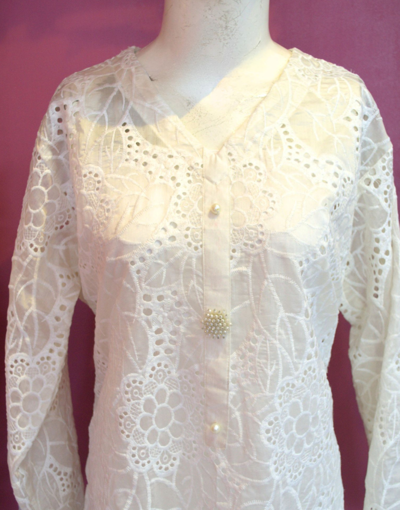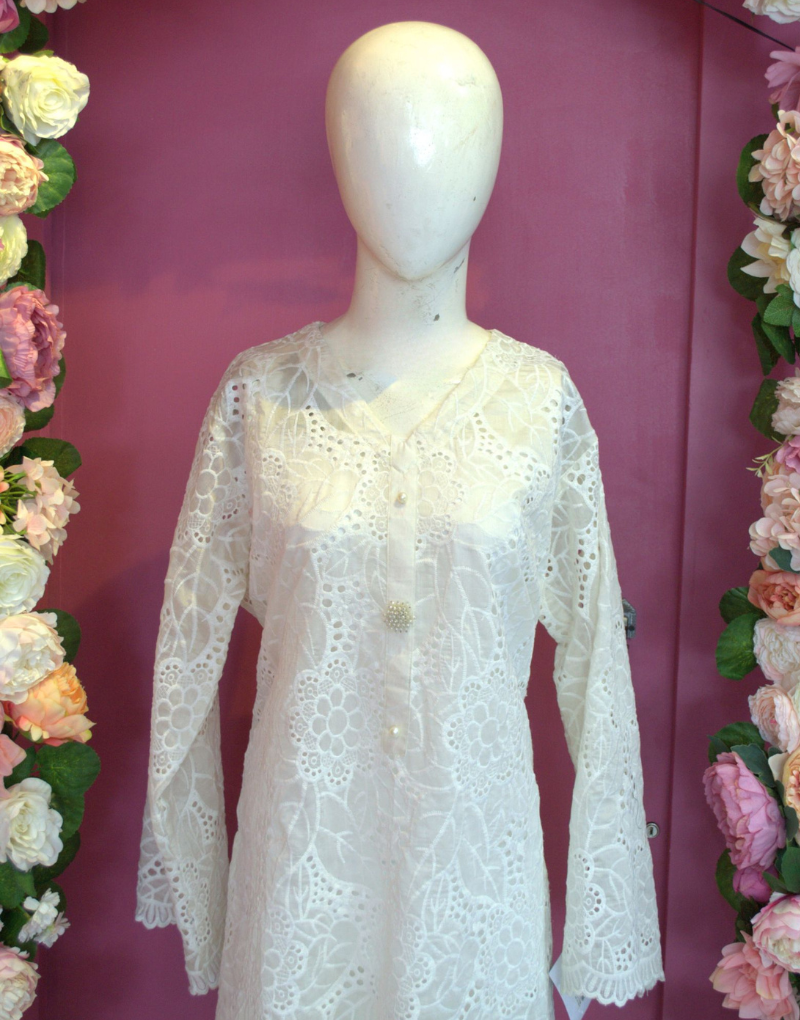 0 out of 5(0)The Off White Chicken Kari Shirt features exquisite hand-embroidered detailing on a soft, neutral base, blending tradition with understated elegance.