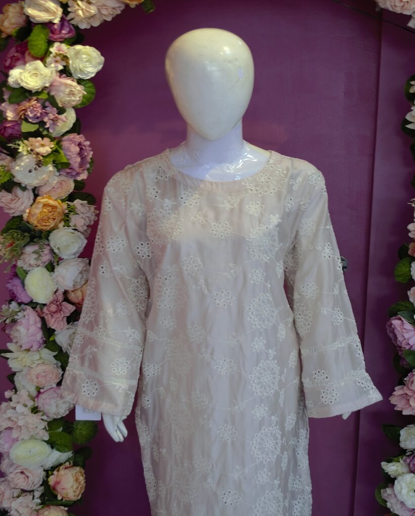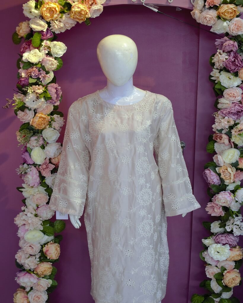 0 out of 5(0)The Powder Pink Chicken Kari features delicate hand embroidery on a soft pastel base, radiating grace and timeless feminine charm.